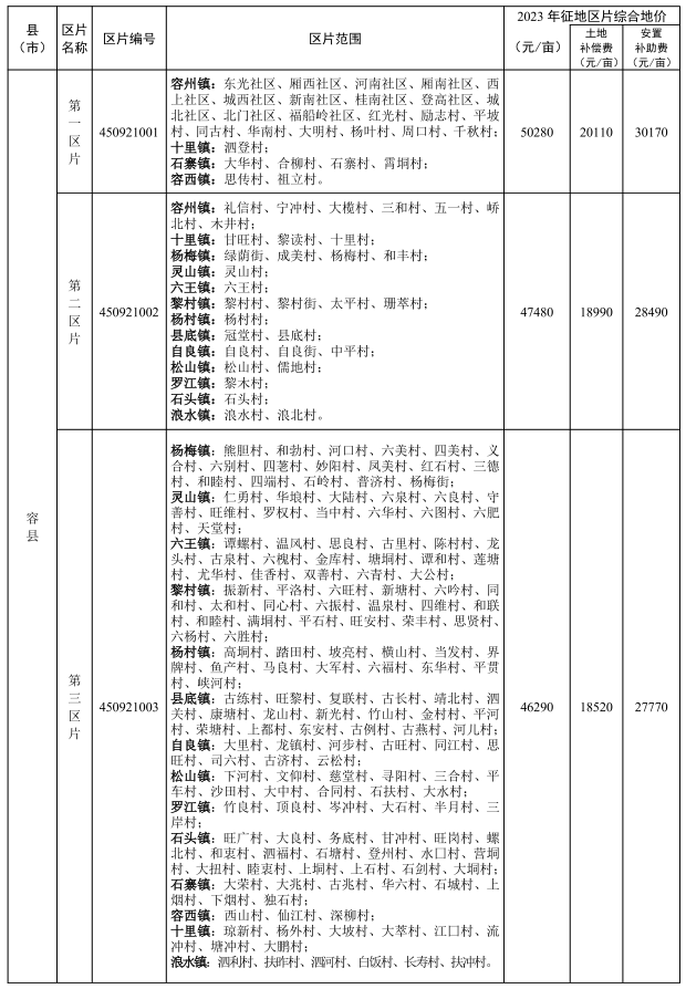 附件:玉林市市辖区及各县(市)征地区片综合地价标准(2023年更新调整)