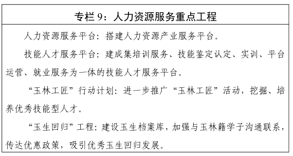围绕玉林市服务业战略定位和需求,完善与服务业发展需求相适应的人才流动和引进机制,完善创新人才薪酬、岗位管理制度和社保关系转移接续政策。出台吸引高端服务业人才的政策措施,营造良好的服务人才创业环境。鼓励本地院校设置现代服务业领域相关专业,积极支持校企共建服务业技能人才培训基地。在现代物流、现代商贸、健康服务、金融服务、电子商务、会展服务等服务业领域的各类高端人才中,选拔培养服务业领军人才。推动人才引进和载体建设,支持人才工作站、技术中心、孵化创业中心等建设,为高端人才集聚提供载体。