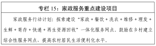 (一)提高家政供需对接。实施“雨露计划”,建立面向困难学生、失业人员、贫困劳动力等人群的免费家政培养培训机制。鼓励职业院校(含技工院校)开设家政服务专业,培养具有“学历证书+职业技能等级证书”的高级家政人才。推动家政进社区,落实家政企业在社区设置服务网点,并在租赁、水电等费用给予优惠。推动家政与电商、干洗、再生资源回收、物业、餐饮、酒店等融合发展,建立“家政服务超市”,加快开展在线预约、上门服务、便捷支付等一站式服务。