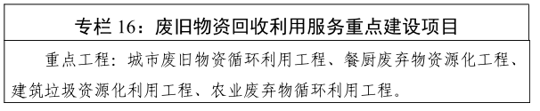 (二)实施废旧物资循环利用工程。依托玉林龙潭进口再生资源加工利用园区国家“城市矿产”示范基地,推进废钢铁、废铝、废塑料、废轮胎等城市废弃物分类利用和集中处置。规划建设玉林市环保静脉产业园,实现玉林市生活垃圾、餐厨垃圾、厨余垃圾、市政污泥、粪便、医疗废弃物、危险废物、废旧汽车及电子垃圾、废旧轮胎处理等的无害化、资源化、减量化分类处理处置。引进、扶持和发展建筑垃圾综合利用项目,加快建筑垃圾资源化利用新工艺、新装备的开发、应用与集成,推动建筑垃圾再生产品规模化、高效化、产业化应用。