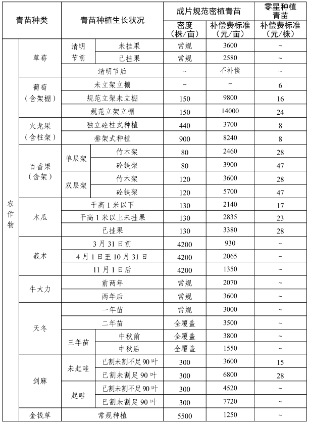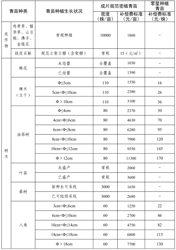 玉林市市辖区征收集体土地青苗和地上附着物补偿标准(2023年更新调整)