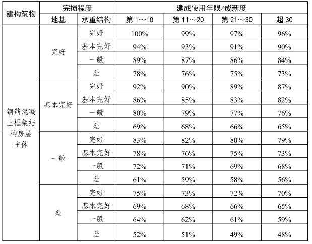 原已毁坏不能使用的,成新度为零;尚能使用的,其中: