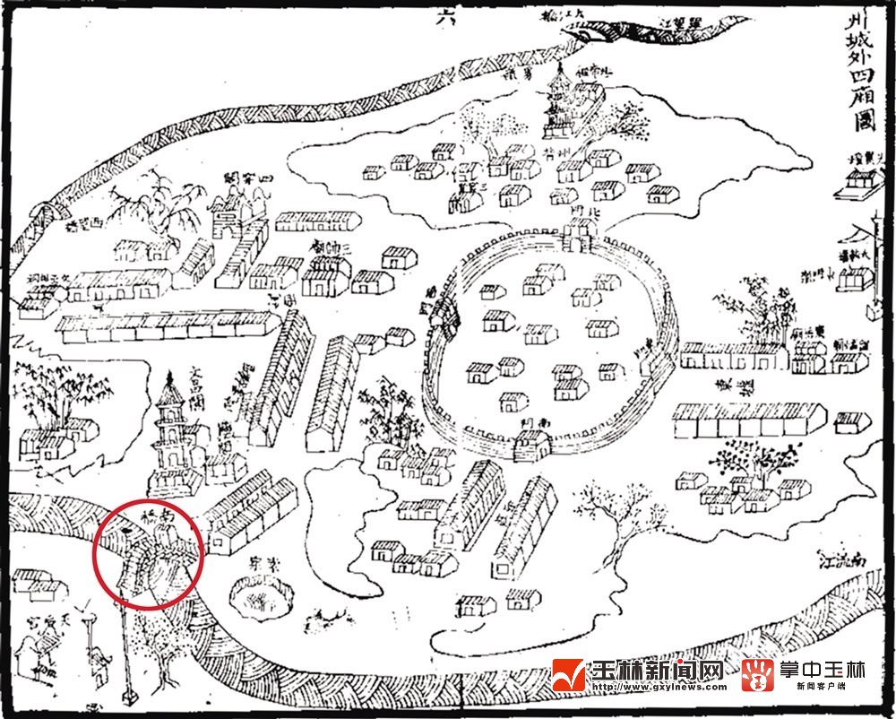 清代《鬱林州志》地图清晰标记云龙桥(圈示处)。