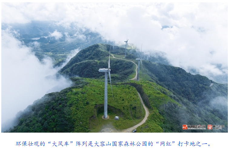 大容山国家森林公园以其包罗万象、无所不容而得名。其最高峰海拔1275.6米,为桂东南最高峰,山上四季分明、植被丰富,形成了南方罕见的高山草甸、湖泊、飞瀑、圣诞林等自然景观,被誉为“中国欧陆风光”。在大容山山顶,可以观风听涛、观云察日,可以观赏一台台高耸入云的风车构成的雄伟壮观的“风车阵”,景区内的天湖风光、桂东南第一峰、九瀑谷、莲花瀑布、试剑石、容山叠嶂、云海日出、冰挂雾凇等八大景远近闻名,是岭南著名的露营天堂、度假胜地。