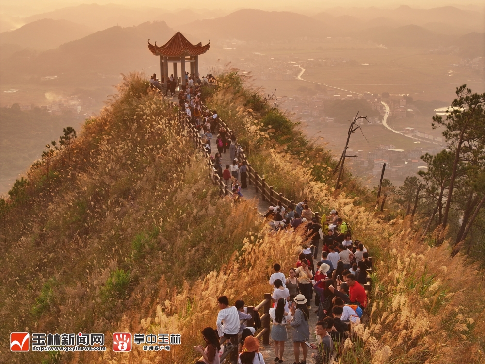 玉林新闻网-玉林日报讯(记者 陈君铭)12月20日,在兴业县蒲塘镇北寮岭生态森林公园,落日晚霞、古朴凉亭与摇曳的芒草花交织成一幅动人的自然画卷,吸引众多游客和摄影爱好者在此观赏、拍照。连日来,这秀美如画的自然风光经社交媒体传播后悄然走红,每天吸引四面八方的游人前来游玩,成为当地新晋的网红打卡点。