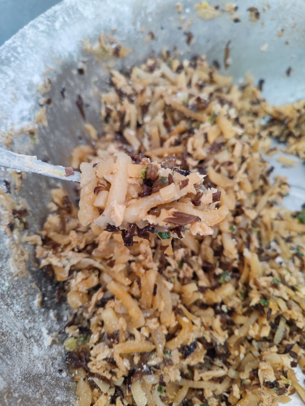 芥菜包的馅料有猪肉、萝卜、木耳等多种食材。