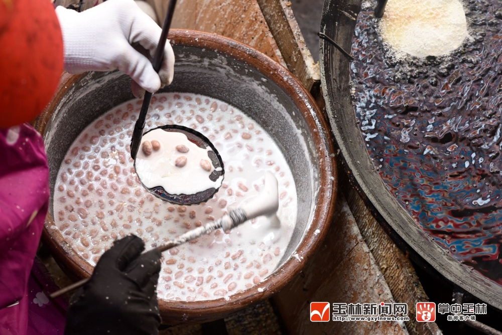 舀米浆。