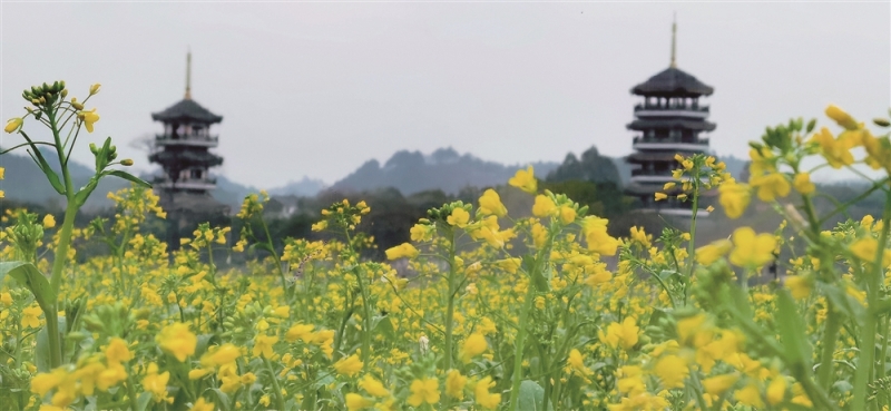 玉林新闻网-玉林晚报讯(记者 黎颖 通讯员 罗原坚 摄)近日,在玉林五彩田园樱花园里,一朵朵樱花正悄然开放,粉色的樱花渐渐染红樱花园,美不胜收。在樱花园不远处的油菜田里,一簇簇金黄色的油菜花迎风摇曳。芳菲如约而至,花海令人沉醉,吸引了不少市民前来观赏、游玩、拍照。