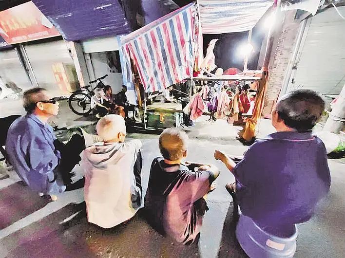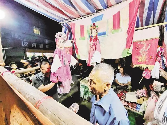 夜深了,木偶戏表演依旧热闹。