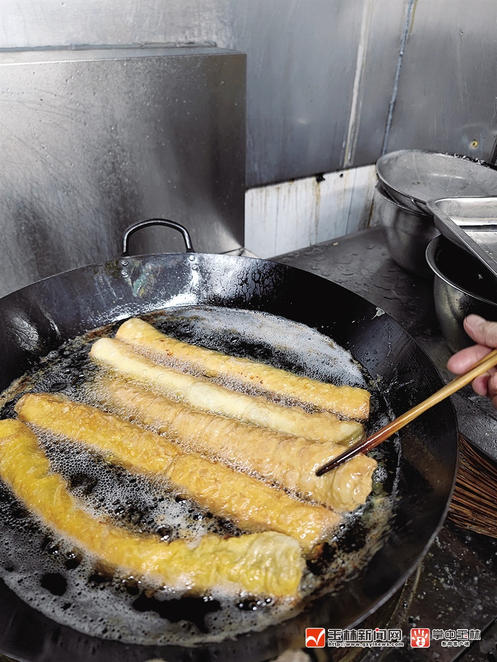 ▲制作蛋卷,最考验技巧的是油炸这道程序。