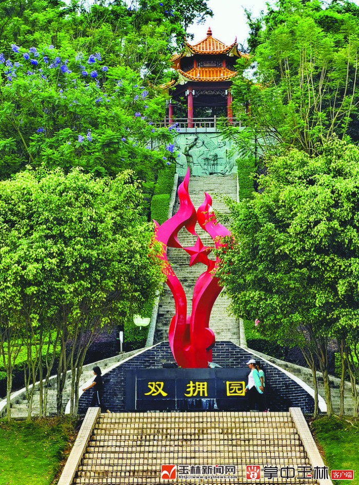 玉林市“双拥园”位于风景秀丽、绿树成荫的玉林市凤凰岭公园,以主题雕塑、浮雕墙、双拥工作简史简介石刻等表现手法,讴歌军民鱼水深情。(本报记者 蒋金泰 摄)