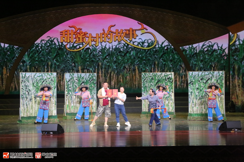 陆川客家啀戏《甜蜜村的故事》剧照。 (韦洪桃 摄)