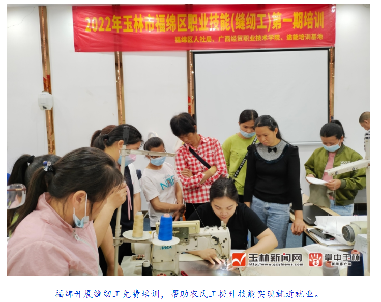 “快去参加缝纫工培训,免费、包教会还推荐岗位,公司就在我们住处附近,工资3000多元。”广西隆生服饰有限公司的陈阿姨逢人就推销自己就职的企业。该公司位于福绵镇青岭村青岭安置点旁,福绵区人社部门不仅免费培训,还将培训合格的缝纫工、裁剪工推荐到该公司,让村民就近就业还能照顾家庭。