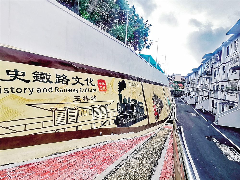 7月8日上午,记者来到该小区看到,平坦整洁的沥青路已经代替了曾经坑洼不平的水泥路面,并重新画上了交通指示线。崭新的儿童乐游设施已经布置到位,多个休息亭也建设完毕,不少老人们在此歇息聊天。小区内,最引人注目的当属富有特色的玉林铁路文化宣传墙。文化墙以铁路文化为主题,绘制了火车头、老式列车等图案,展示了玉林铁路发展史,不仅美化了小区环境,更传承和弘扬了本地独特的铁路文化。