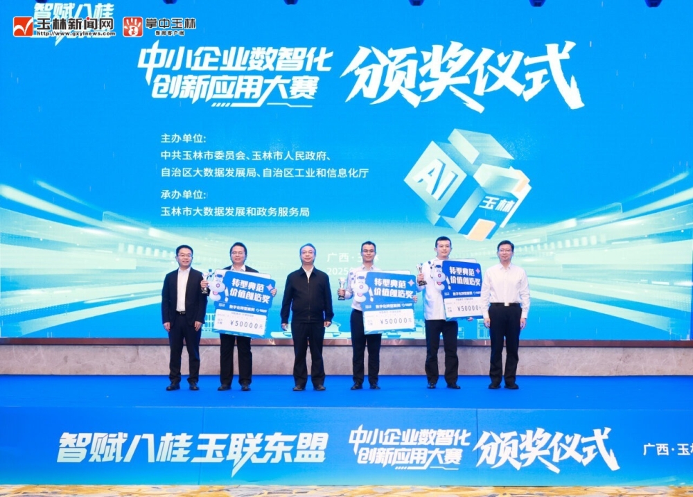 10月22日,“智赋八桂 玉联东盟”中小企业数智化创新应用大赛颁奖仪式在玉林举行。市委书记王琛、市长张惠强出席并为获奖团队代表颁奖。