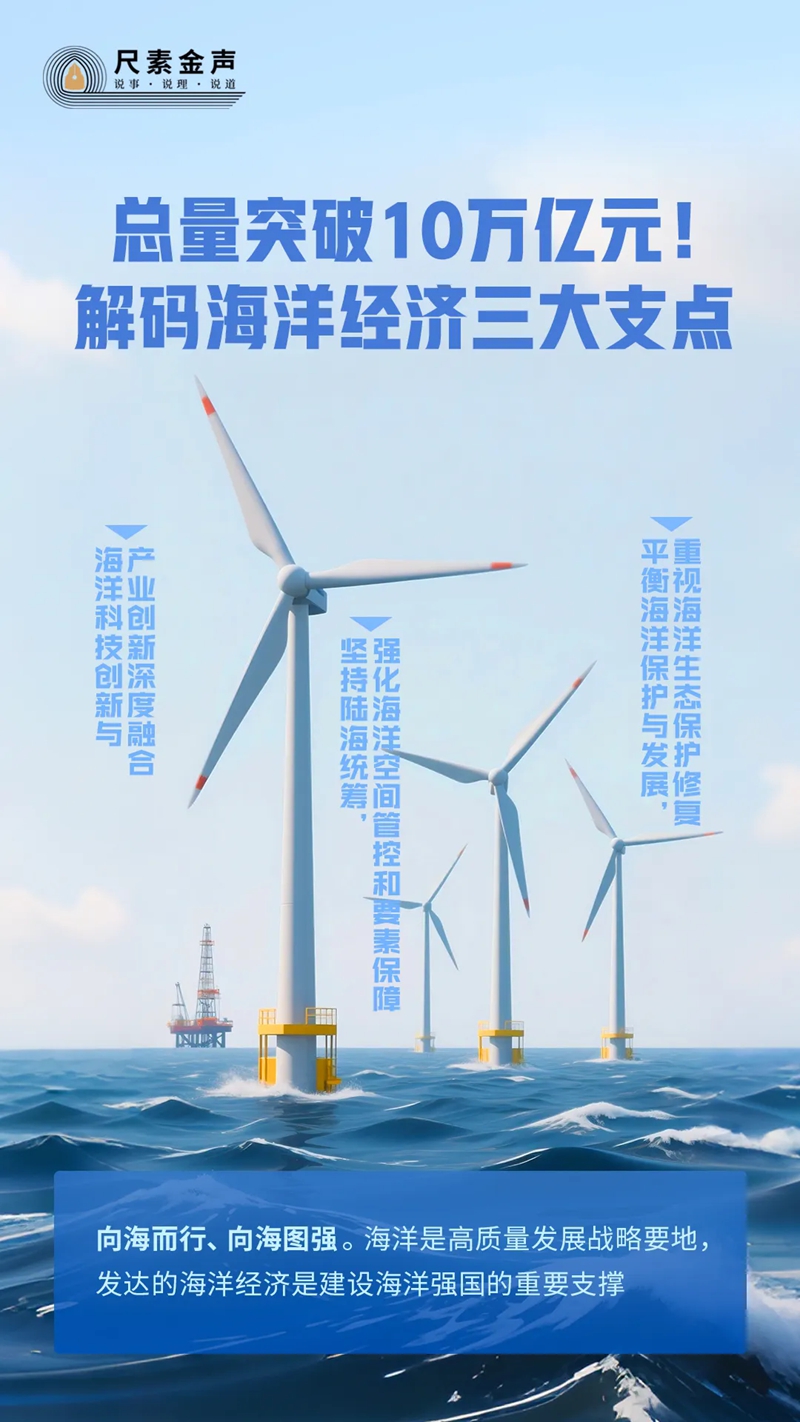 海洋科技水平决定着海洋经济的开发程度。随着我国海洋科技创新进步,海洋传统产业数智化、高端化转型升级步伐加快,海洋新兴产业持续培育壮大。这组数字令人振奋:去年我国海洋新兴产业增加值同比增长7.2%,海洋制造业增加值3.2万亿元,占海洋生产总值比重超三成。再看生动实践:首个金枪鱼智慧渔情预报系统海鹰AI、首个渔业大模型“范蠡”等陆续面世,一大批智能装备打造智慧渔业、重塑耕海牧渔;海洋领域关键技术装备取得突破,“梦想”号等高端深海利器入列,钻探万米、掘金挖宝;深海微生物科研成果涌现,我国自主研发的海洋药物占全球已上市品类的近30%,“蓝色药库”开发进展显著;“北东南,浅海+深远海”国家海洋综合试验场体系加快建设,支撑涉海企业技术研发、测试试验、产品孵化、检验检测,打通海洋科技成果转化“最后一公里”。