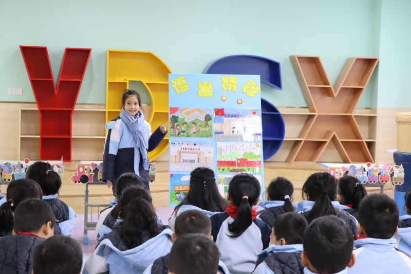 玉东新区第四小学二年级学生参加语出精彩项目,画出心中的校园并向大家介绍。(玉东四小供图)
