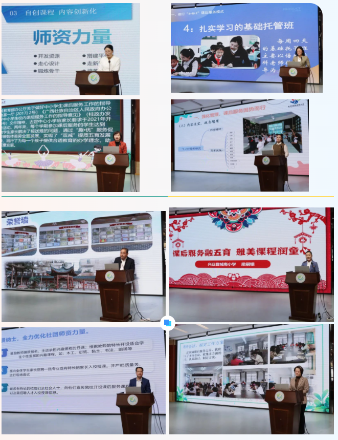 玉东新区玉东小学、玉东新区实验小学、博白县博白镇第十一小学、兴业县石南镇至德小学、玉州区古定中心小学、陆川中学附属小学、容县容州镇第五小学、容县容州镇中心学校、北流市永丰小学、兴业县城南小学、玉州区第五实验小学等11所自治区义务教育学校特色校的校长分别进行了交流发言,介绍了各自开展课后服务的工作情况、先进经验和特色亮点。我市11所自治区义务教育学校特色校结合学校实际、办学特色、学生学习和成长需求,积极开发设置课后服务项目,切实增强课后服务的吸引力、有效性,有想法、有思路,有措施、有成效,有亮点、有特色,为整体提升全市课后服务质量提供了可信、可学、可借鉴,适用性广、操作性强的典型经验。