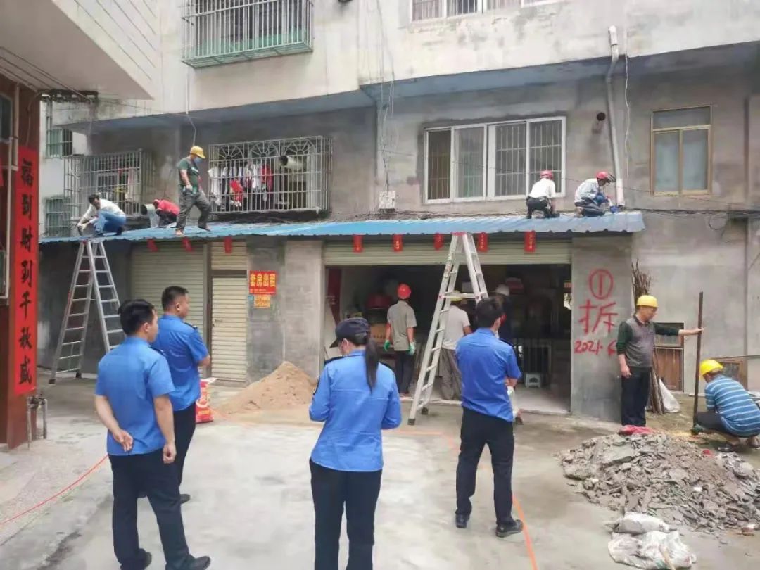 针对问题,工作组多方联系到屋主,向他们宣传违建治理相关法律法规、违法建设存在的安全隐患等。在当事人同意进行拆除后,执法人员对违建的车棚和部分墙体进行拆除,并要求屋主及时清理杂物以及建筑垃圾。目前,该处问题已整改完毕,消除了安全隐患,还居民干净整洁的居住环境。