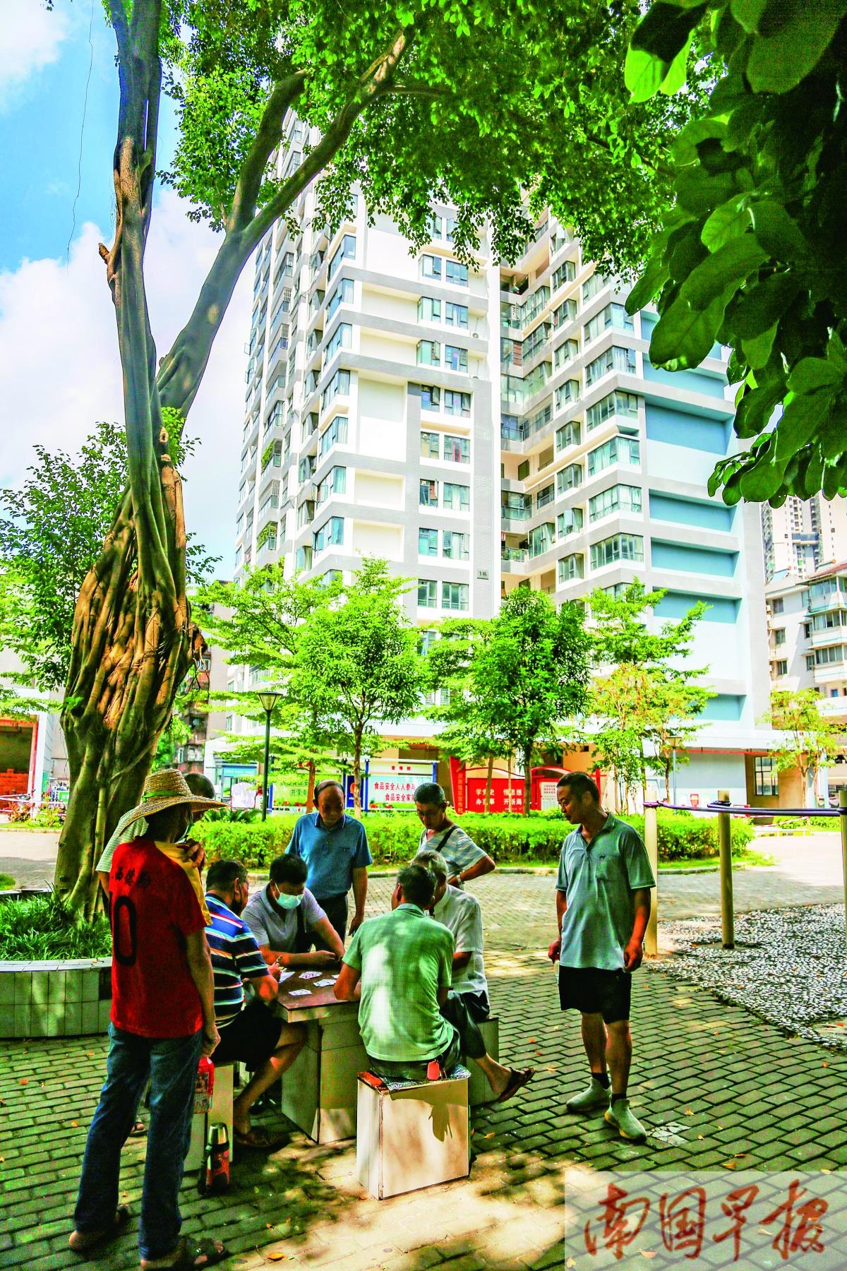 一小区内,几位老人打牌娱乐。南国早报记者 游拥军 摄