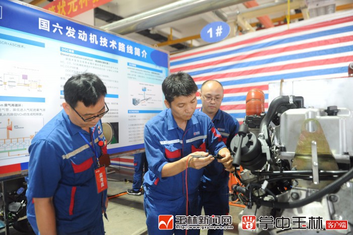参赛工人正在进行国六发动机电控技能实操竞赛