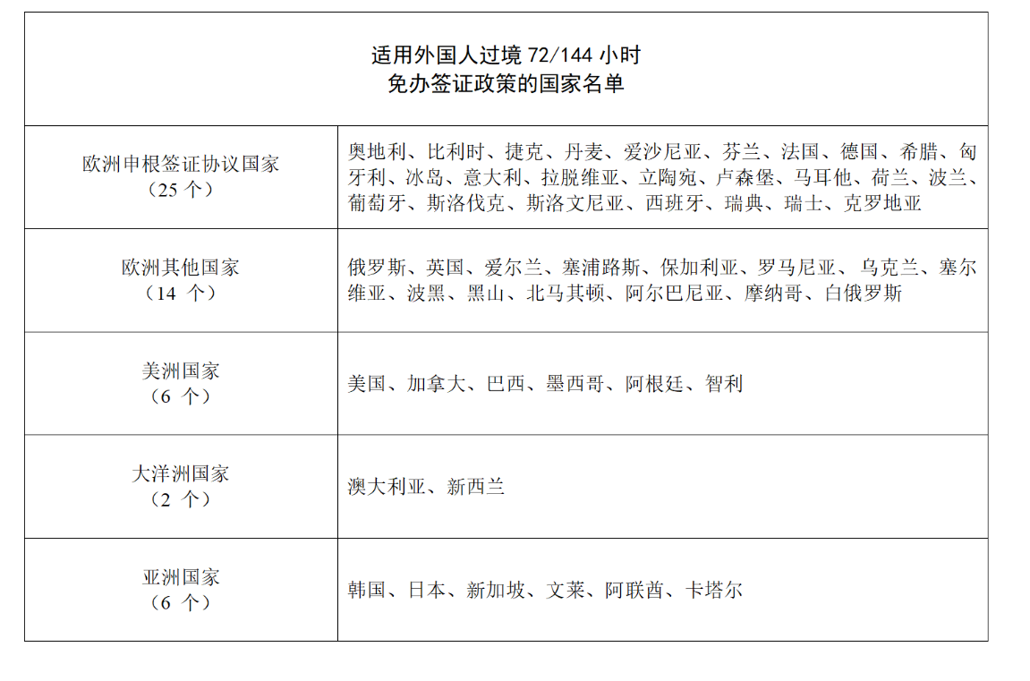 一是要属于72/144小时过境免签范围国家的公民(详细国家名单请看下表↓↓↓);