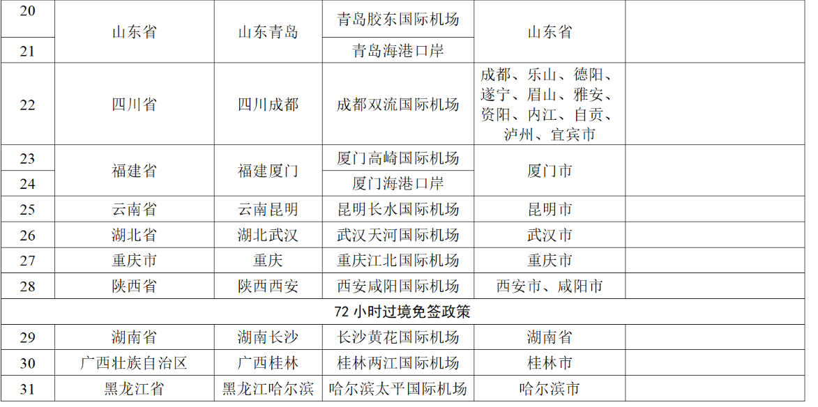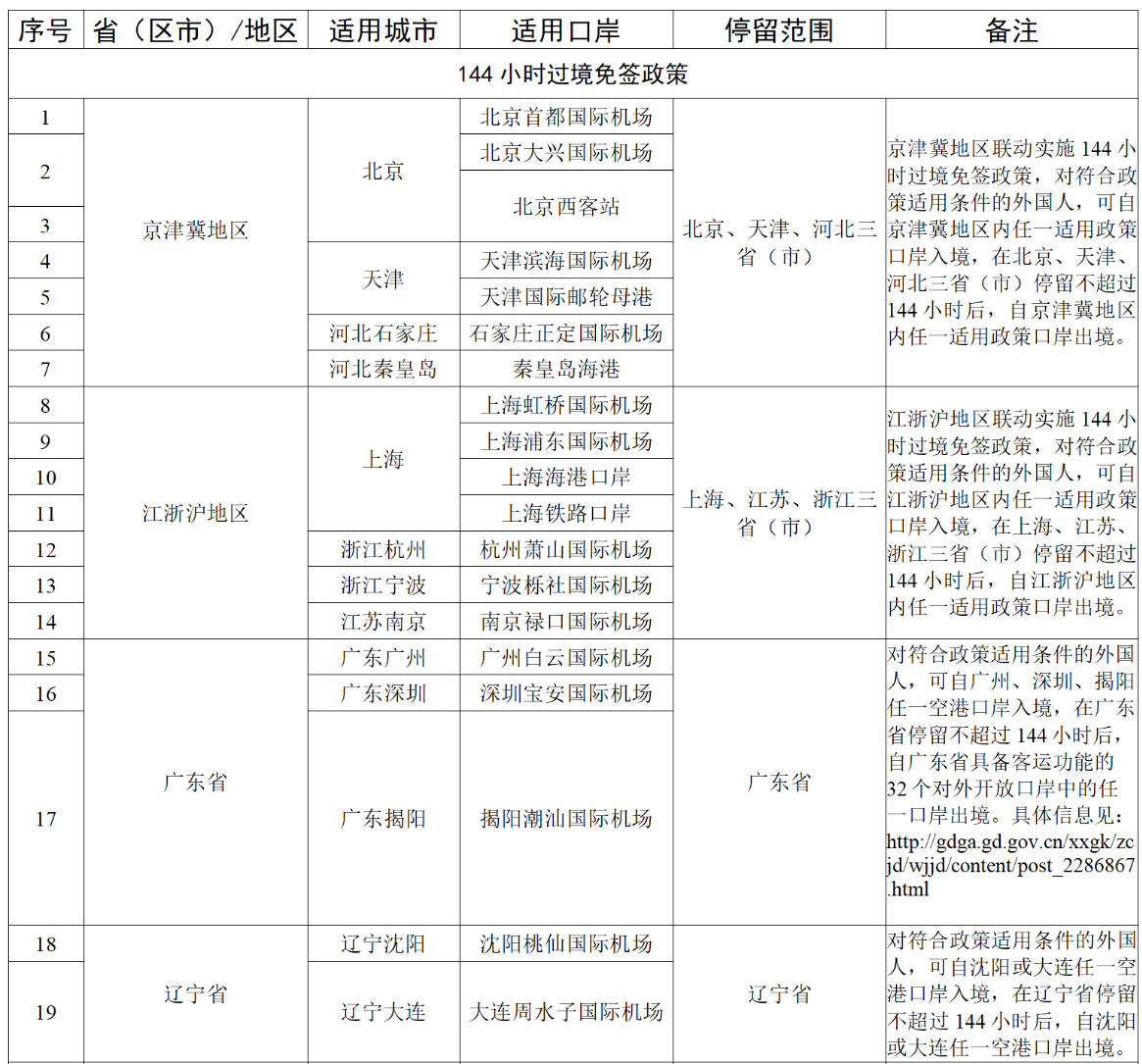 如外国人符合上述条件,可向我国20个城市的边检机关提出办理144小时过境免签申请,或向3个城市的边检机关提出办理72小时过境免签申请,其他城市暂未实施该项政策。