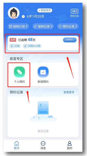 “广西疾控”公众号-“疾控服务”-“疫苗预约 含新冠”功能,不仅可以查询到每一剂次疫苗接种记录,还会提示小朋友下一次疫苗接种的时间、名称,让父母们对孩子及自身的疫苗接种情况了若指掌,及时主动接种疫苗,为家人们的健康保驾护航!