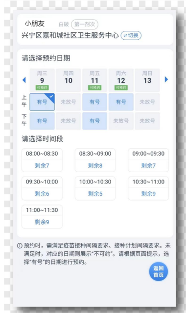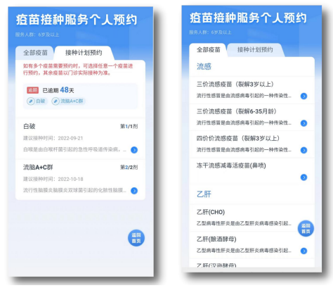 6.可选择按接种计划预约或全部疫苗进行预约。